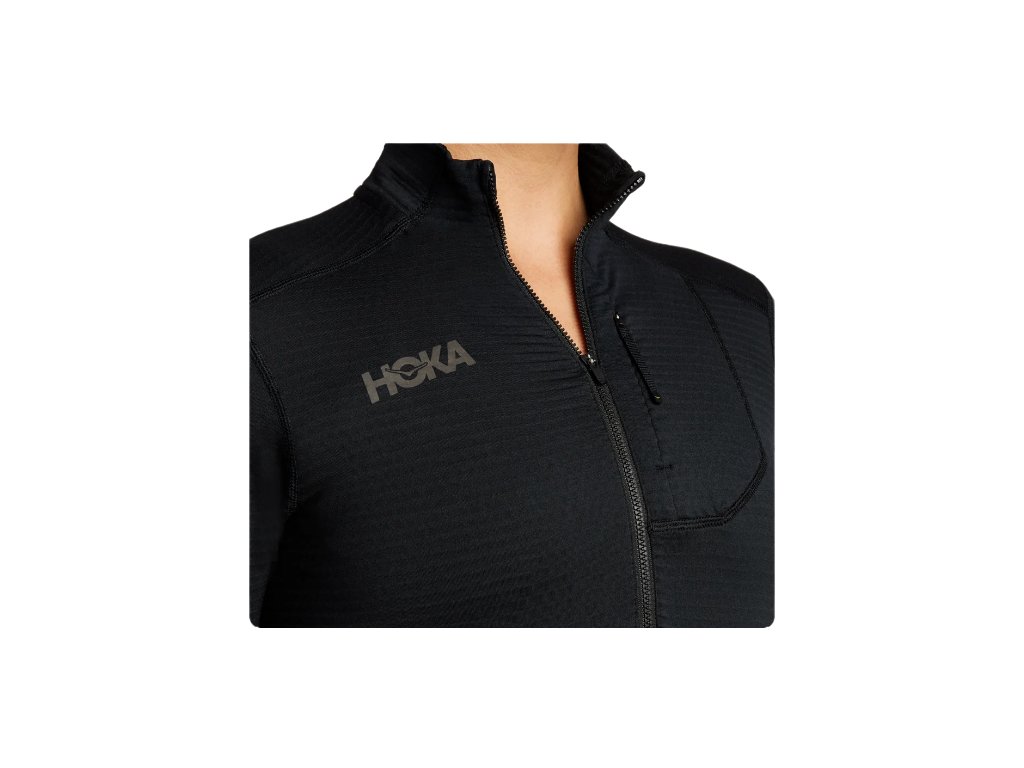 Funkce - froté pletenina, přední zip pro ventilaci a termoregulaci, levá náprsní kapsa se skrytým zipem pro uložení věcí, otvory pro palce na zápěstí
