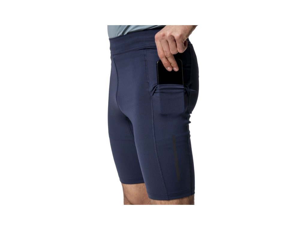 Klasické pánské krátké běžecké elasťáky z funkčního, čtyřsměrně strečového materiálu. Šortky mají širší pas se šňůrkou pro regulaci. Vzadu je malá kapsa na zip a na levém stehně z boku je druhá, poměrně prostorná kapsa například na doplňky výživy na delší běh. Tyto běžecké šortky mají anatomický střih, takže perfektně sedí. Jako správné běžecké kraťasy jsou doplněny o reflexní prvky pro bezpečný běh za horších světelných podmínek