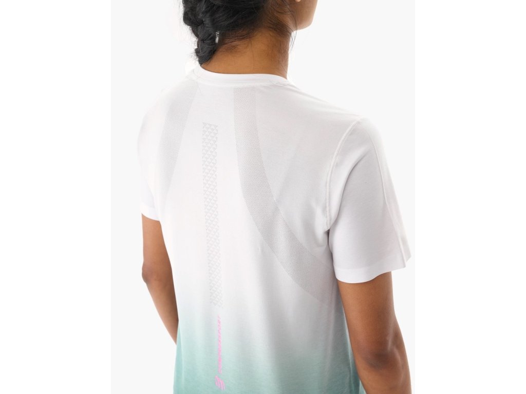 Dámské bezešvé, měkké, termoregulační sportovní tričko s integrovanou ventilací pro trénink, závody a vysoce intenzivní tréninky.