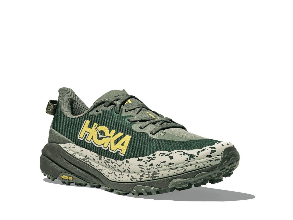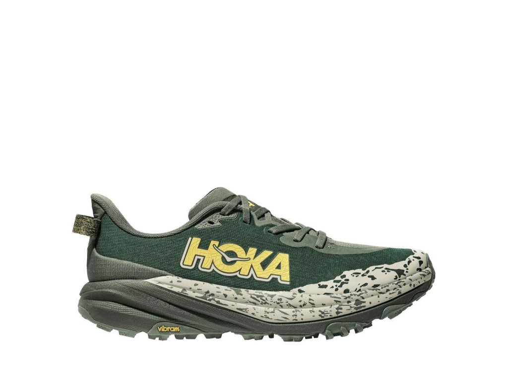 Díky kombinaci osvědčeného a skutečného tlumení HOKA s agresivní trakcí a ultralehkými materiály se Speedgoat 6 zrodil pro pokoření trailu. Tato nedávná reedice, byla zdokonalena prodyšným svrškem z tkané textilie, vnitřní podešví obepínající chodidla, polstrovaným dvojitým klínovým jazykem a upravenou orientací výstupků na podrážce inspirovanou kopytem kozy :)